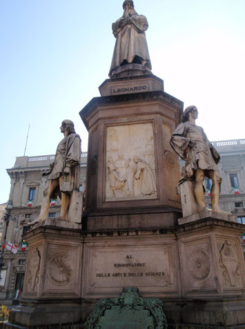 スカラ広場のレオナルド・ダ・ヴィンチの像。