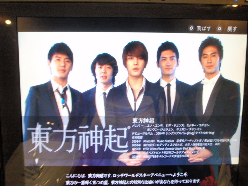 好きなアーティストへメッセージを送れる機械の東方神起からのメッセージ画面。