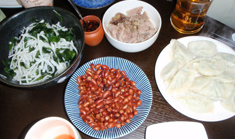 そんな感じで、毎回作業の90%以上をOさんに任せてしまいながら出来た餃子(--;)と、Oさんの手料理の数々がこちら