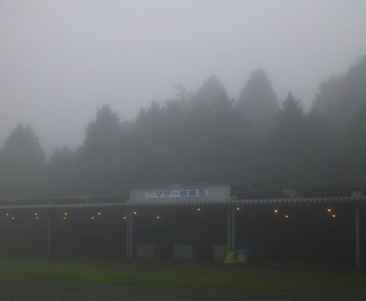 ものすごい勢いで、霧に覆われるマ○ー牧場。苦笑。